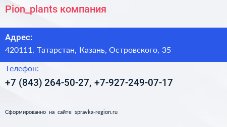 Pion_plants, компания по адресу 420111, Татарстан, Казань, Островского, 35 в дальнейшем Организация, размещена в следующих категориях: