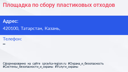 Площадка по сбору пластиковых отходов по адресу 420100, Татарстан, Казань, в дальнейшем Организация, размещена в следующих категориях: