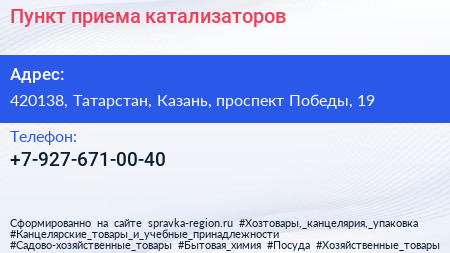 Пункт приема катализаторов по адресу 420138, Татарстан, Казань, проспект Победы, 19 в дальнейшем Организация, размещена в следующих категориях: