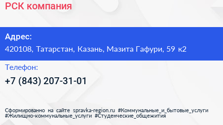 РСК, компания по адресу 420108, Татарстан, Казань, Мазита Гафури, 59 к2 в дальнейшем Организация, размещена в следующих категориях: