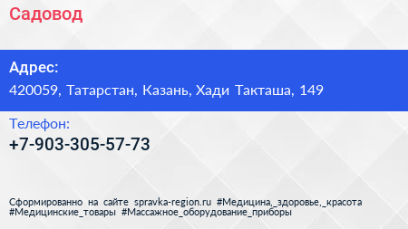 Садовод по адресу 420059, Татарстан, Казань, Хади Такташа, 149 в дальнейшем Организация, размещена в следующих категориях: