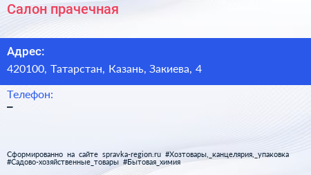 Салон-прачечная по адресу 420100, Татарстан, Казань, Закиева, 4 в дальнейшем Организация, размещена в следующих категориях: