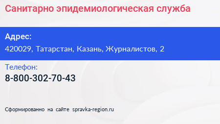 Санитарно-эпидемиологическая служба по адресу 420029, Татарстан, Казань, Журналистов, 2 в дальнейшем Организация, размещена в следующих категориях: