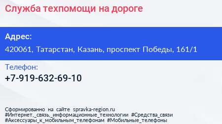 Служба техпомощи на дороге по адресу 420061, Татарстан, Казань, проспект Победы, 161/1 в дальнейшем Организация, размещена в следующих категориях: