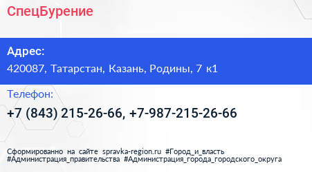 СпецБурение по адресу 420087, Татарстан, Казань, Родины, 7 к1 в дальнейшем Организация, размещена в следующих категориях: