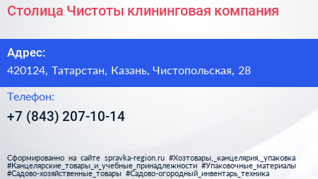 Столица Чистоты, клининговая компания по адресу 420124, Татарстан, Казань, Чистопольская, 28 в дальнейшем Организация, размещена в следующих категориях:
