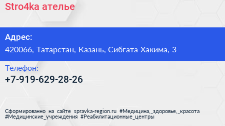 Stro4ka, aтелье по адресу 420066, Татарстан, Казань, Сибгата Хакима, 3 в дальнейшем Организация, размещена в следующих категориях: