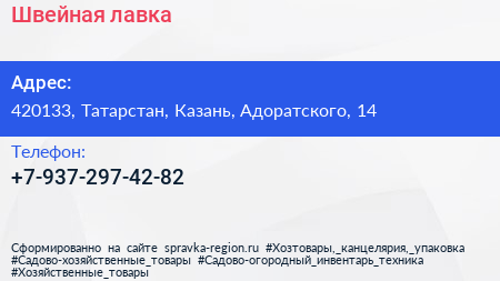 Швейная лавка по адресу 420133, Татарстан, Казань, Адоратского, 14 в дальнейшем Организация, размещена в следующих категориях: