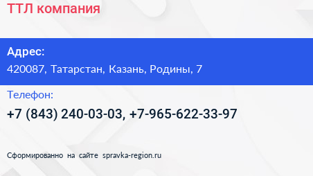 ТТЛ, компания по адресу 420087, Татарстан, Казань, Родины, 7 в дальнейшем Организация, размещена в следующих категориях: