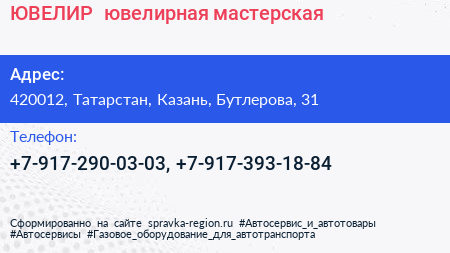 ЮВЕЛИР+, ювелирная мастерская по адресу 420012, Татарстан, Казань, Бутлерова, 31 в дальнейшем Организация, размещена в следующих категориях: