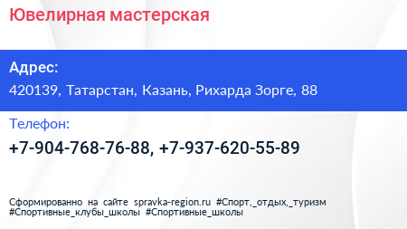 Ювелирная мастерская по адресу 420139, Татарстан, Казань, Рихарда Зорге, 88 в дальнейшем Организация, размещена в следующих категориях:
