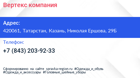 Вертекс, компания по адресу 420061, Татарстан, Казань, Николая Ершова, 29Б в дальнейшем Организация, размещена в следующих категориях: