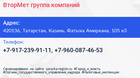 ВторМет, группа компаний по адресу 420136, Татарстан, Казань, Фатыха Амирхана, 105 к3 в дальнейшем Организация, размещена в следующих категориях: