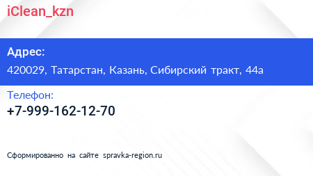 iClean_kzn по адресу 420029, Татарстан, Казань, Сибирский тракт, 44а в дальнейшем Организация, размещена в следующих категориях: