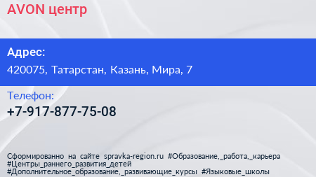 AVON, центр по адресу 420075, Татарстан, Казань, Мира, 7 в дальнейшем Организация, размещена в следующих категориях: