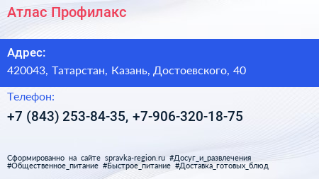 Атлас Профилакс по адресу 420043, Татарстан, Казань, Достоевского, 40 в дальнейшем Организация, размещена в следующих категориях: