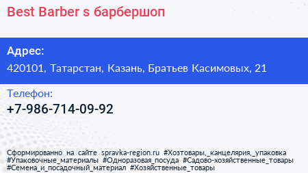 Best Barber`s, барбершоп по адресу 420101, Татарстан, Казань, Братьев Касимовых, 21 в дальнейшем Организация, размещена в следующих категориях: