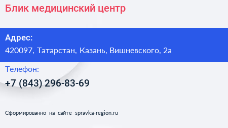 Блик, медицинский центр по адресу 420097, Татарстан, Казань, Вишневского, 2а в дальнейшем Организация, размещена в следующих категориях: