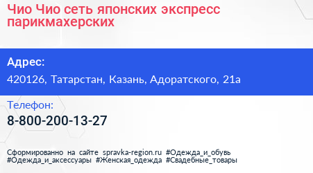 Чио Чио, сеть японских экспресс-парикмахерских по адресу 420126, Татарстан, Казань, Адоратского, 21а в дальнейшем Организация, размещена в следующих категориях: