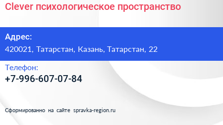 Clever, психологическое пространство по адресу 420021, Татарстан, Казань, Татарстан, 22 в дальнейшем Организация, размещена в следующих категориях: