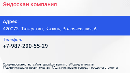 Эндоскан, компания по адресу 420073, Татарстан, Казань, Волочаевская, 6 в дальнейшем Организация, размещена в следующих категориях: