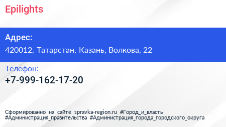 Epilights по адресу 420012, Татарстан, Казань, Волкова, 22 в дальнейшем Организация, размещена в следующих категориях: