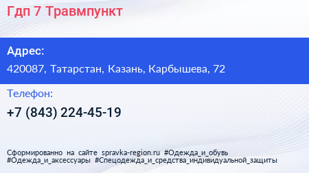 Гдп №7, Травмпункт по адресу 420087, Татарстан, Казань, Карбышева, 72 в дальнейшем Организация, размещена в следующих категориях: