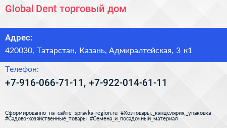 Global Dent, торговый дом по адресу 420030, Татарстан, Казань, Адмиралтейская, 3 к1 в дальнейшем Организация, размещена в следующих категориях:
