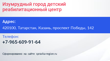 Изумрудный город, детский реабилитационный центр по адресу 420100, Татарстан, Казань, проспект Победы, 142 в дальнейшем Организация, размещена в следующих категориях: