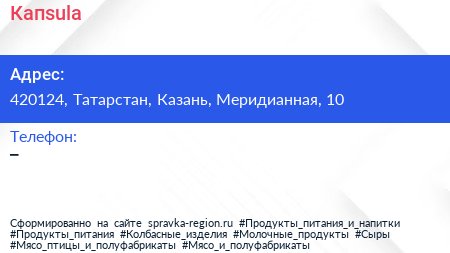 Капsula по адресу 420124, Татарстан, Казань, Меридианная, 10 в дальнейшем Организация, размещена в следующих категориях:
