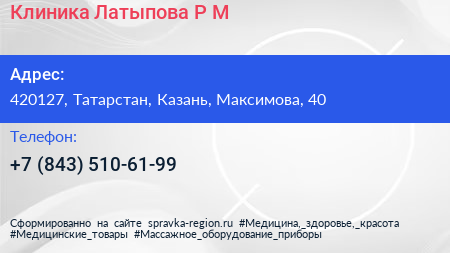 Клиника Латыпова Р.М. по адресу 420127, Татарстан, Казань, Максимова, 40 в дальнейшем Организация, размещена в следующих категориях: