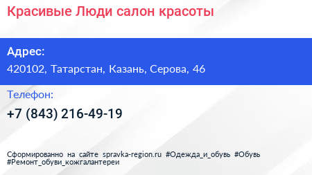 Красивые Люди, салон красоты по адресу 420102, Татарстан, Казань, Серова, 46 в дальнейшем Организация, размещена в следующих категориях: