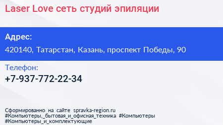 Laser Love, сеть студий эпиляции по адресу 420140, Татарстан, Казань, проспект Победы, 90 в дальнейшем Организация, размещена в следующих категориях: