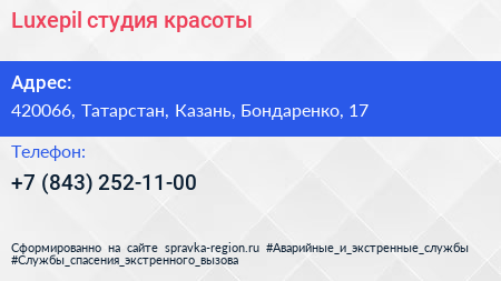 Luxepil, студия красоты по адресу 420066, Татарстан, Казань, Бондаренко, 17 в дальнейшем Организация, размещена в следующих категориях: