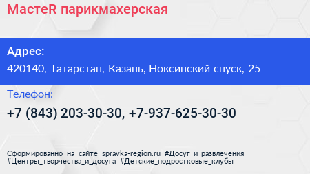 МастеR, парикмахерская по адресу 420140, Татарстан, Казань, Ноксинский спуск, 25 в дальнейшем Организация, размещена в следующих категориях: