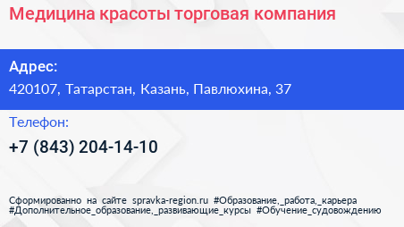 Медицина красоты, торговая компания по адресу 420107, Татарстан, Казань, Павлюхина, 37 в дальнейшем Организация, размещена в следующих категориях: