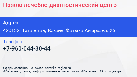 Нэжла, лечебно-диагностический центр по адресу 420132, Татарстан, Казань, Фатыха Амирхана, 26 в дальнейшем Организация, размещена в следующих категориях: