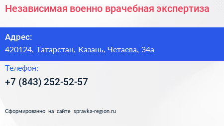 Независимая военно-врачебная экспертиза по адресу 420124, Татарстан, Казань, Четаева, 34а в дальнейшем Организация, размещена в следующих категориях: