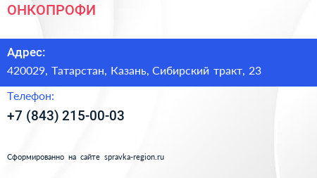 ОНКОПРОФИ по адресу 420029, Татарстан, Казань, Сибирский тракт, 23 в дальнейшем Организация, размещена в следующих категориях: