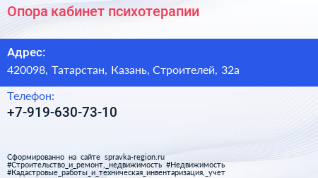 Опора, кабинет психотерапии по адресу 420098, Татарстан, Казань, Строителей, 32а в дальнейшем Организация, размещена в следующих категориях: