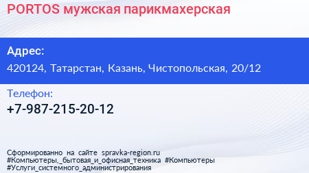 PORTOS, мужская парикмахерская по адресу 420124, Татарстан, Казань, Чистопольская, 20/12 в дальнейшем Организация, размещена в следующих категориях: