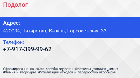 Подолог по адресу 420034, Татарстан, Казань, Горсоветская, 33 в дальнейшем Организация, размещена в следующих категориях: