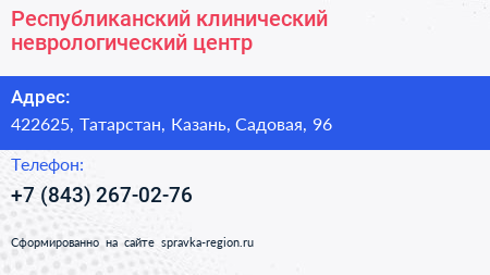 Республиканский клинический неврологический центр по адресу 422625, Татарстан, Казань, Садовая, 96 в дальнейшем Организация, размещена в следующих категориях: