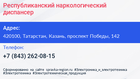 Республиканский наркологический диспансер по адресу 420100, Татарстан, Казань, проспект Победы, 142 в дальнейшем Организация, размещена в следующих категориях: