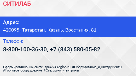 СИТИЛАБ по адресу 420095, Татарстан, Казань, Восстания, 81 в дальнейшем Организация, размещена в следующих категориях: