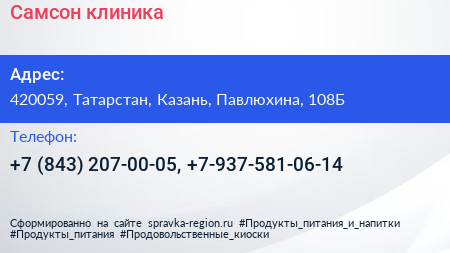 Самсон, клиника по адресу 420059, Татарстан, Казань, Павлюхина, 108Б в дальнейшем Организация, размещена в следующих категориях: