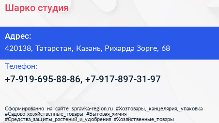 Шарко, студия по адресу 420138, Татарстан, Казань, Рихарда Зорге, 68 в дальнейшем Организация, размещена в следующих категориях: