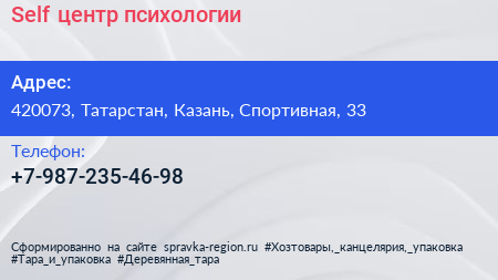 Self, центр психологии по адресу 420073, Татарстан, Казань, Спортивная, 33 в дальнейшем Организация, размещена в следующих категориях: