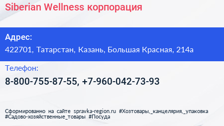 Siberian Wellness, корпорация по адресу 422701, Татарстан, Казань, Большая Красная, 214а в дальнейшем Организация, размещена в следующих категориях: