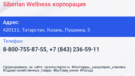 Siberian Wellness, корпорация по адресу 420111, Татарстан, Казань, Пушкина, 5 в дальнейшем Организация, размещена в следующих категориях: